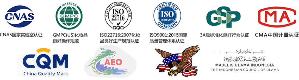 • 通過(guò)ISO22716化妝品良好生產(chǎn)規(guī)范認(rèn)證